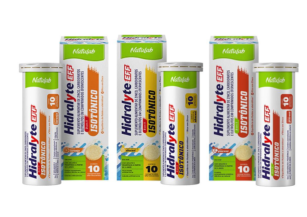 Hidralyte EFF, da Natulab Farmacêutica, traz fórmula pensada para hidratar e repor eletrólitos com apresentação em comprimidos efervescentes