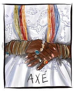 No local, Fause apresenta, além de joias, uma linha inédita de objetos para casa, como colares de parede e de mesa inspirados em balangandãs e joias crioulas, além de pratos de madeira com frases e elementos dourados. A coleção inclui ainda cangas estampadas com pinturas autorais, kaftans, roupas leves, bolsas e acessórios que evocam referências das baianas, do axé e dos orixás.