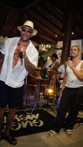 Um dos pontos altos da noite foi a participação especial do anfitrião. Leo Santana subiu ao palco improvisado, dividiu os vocais com Guga Meyra e animou ainda mais os convidados, reforçando a sintonia musical e a parceria entre os artistas.