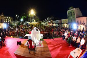 A noite ganhou brilho especial com missa, desfile, Papai Noel e uma iluminação que transformou o Centro Histórico em cenário de encantamento
