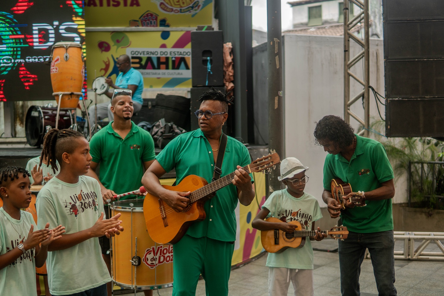 O Pelourinho foi palco, nesta última quinta-feira (16), de uma celebração marcada por muita alegria e samba no pé. A banda Viola de Doze comemorou os 10 anos do ‘Violinha Boa’ com uma apresentação especial no Largo Teresa Batista, reunindo público, alunos do projeto social e convidados em um momento que traduziu a essência da iniciativa. Durante o evento, o clima foi de celebração. As crianças participaram ativamente, subiram ao palco, tocaram e demonstraram, com entusiasmo, o aprendizado construído ao longo do tempo. “Ver essas crianças no palco, seguras, felizes e mostrando o que aprenderam, é a maior resposta de que estamos no caminho certo. O Violinha Boa nasceu de um sonho e hoje é uma realidade que transforma vidas todos os dias”, destacou Helon Neves, vocalista da Viola de Doze.